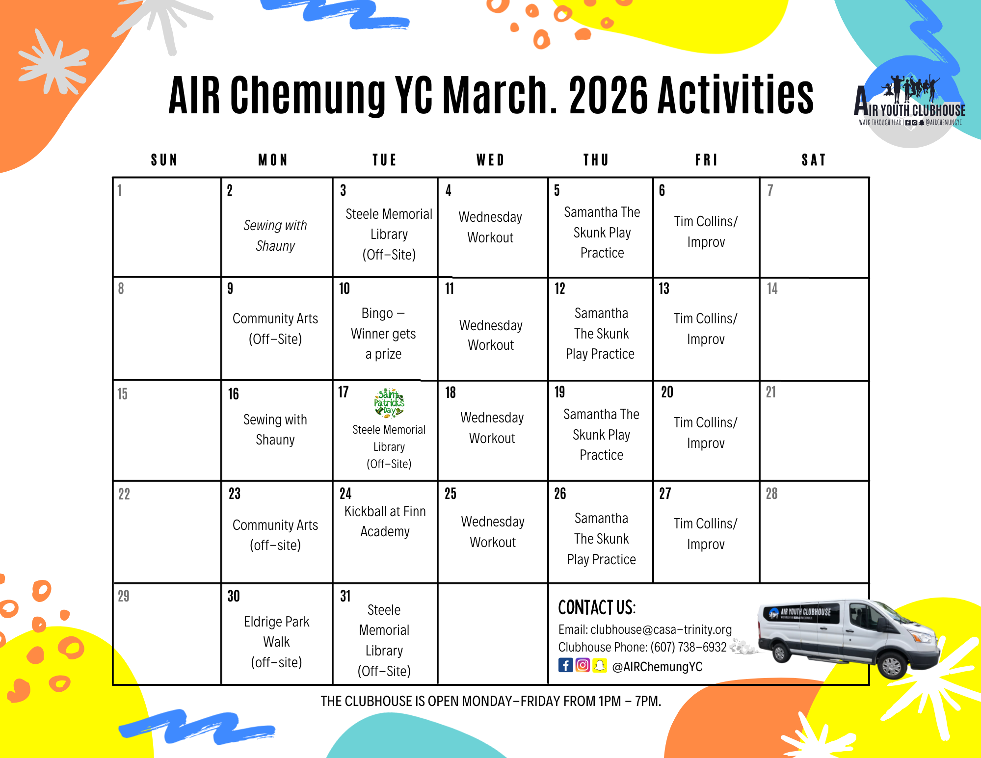 Follow AIR Chemung Youth Clubhouse on Facebook, Instagram and Snapchat at @AirChemungYC to stay connected!